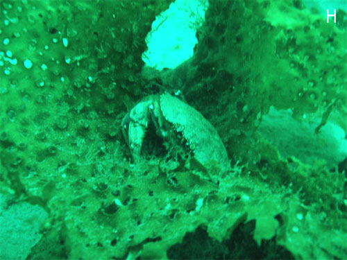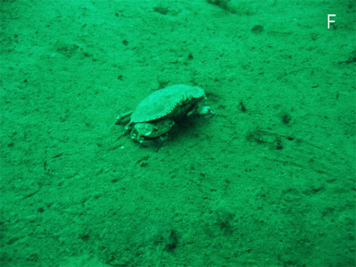 Crab moving along the sand bottom. Location F (Photo: Kathy and Dave Brush)