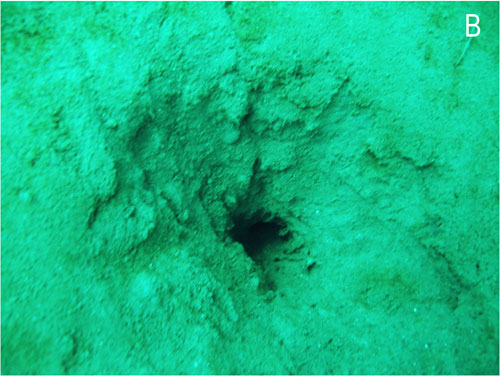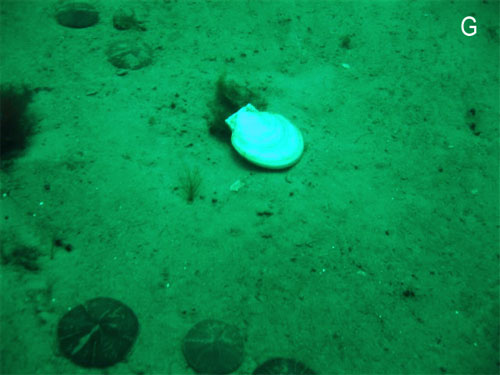 Scallop and sand dollars on firm sand bottom. Location G (Photo: Kathy and Dave Brush)