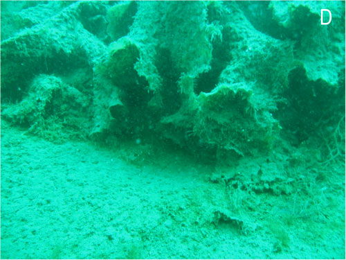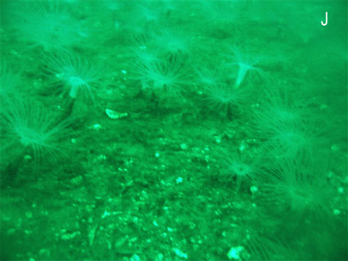 Contrast above with this picture of marine life on a gravel, rocky bottom, 30 m from waste perimeter. Location J (Photo: Kathy and Dave Brush)