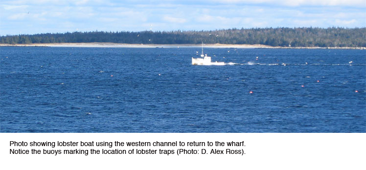 - In the spring, seeing lobsters “migrating into the harbour through shoals in the the western channel and over the Reef.” (at the entrance to the western Channel) towards the proposed site