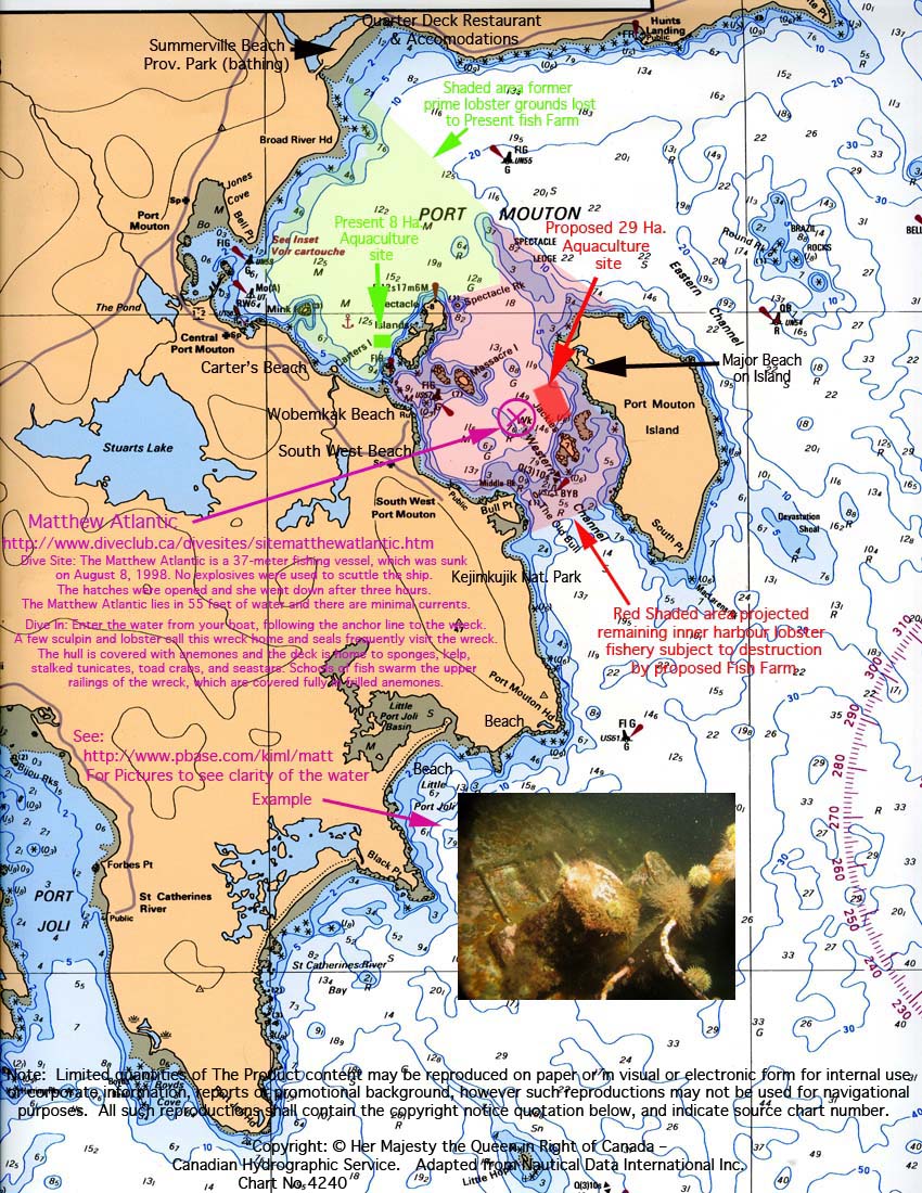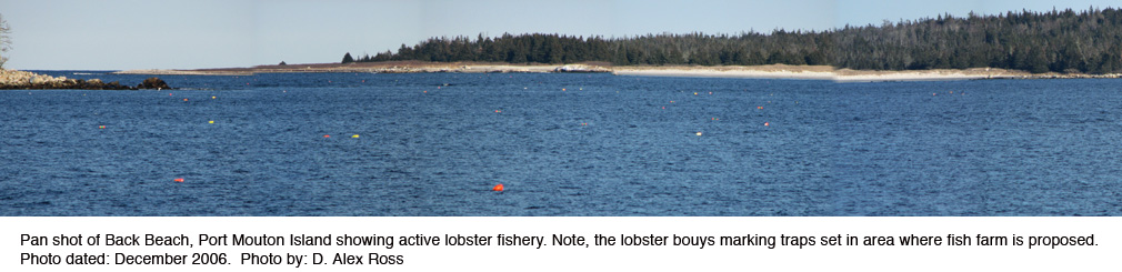 When a second salmon site was proposed for the western side of the Bay, just off Port Mouton Island, the community became gravely concerned. A second, much larger fish farm, would have had an even more profound impact on commercial fisheries. That area of the Bay was an integral (even critcal) part of the Bay's marine ecosystem.