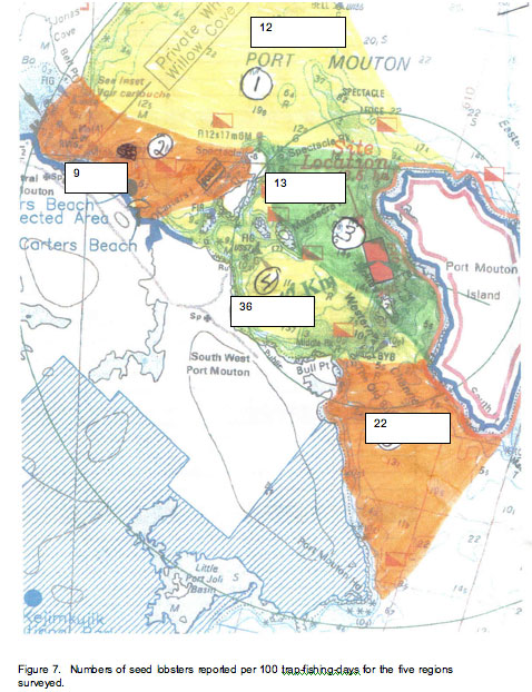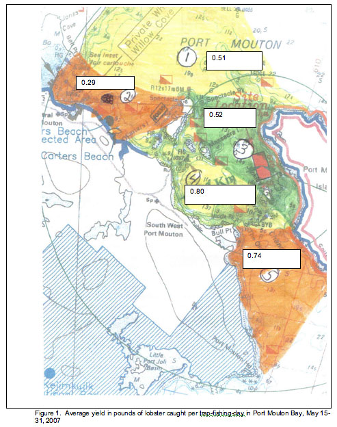 See Map - Lobster Catch, Map - Berried Lobster, Full Document: Port Mouton Bay Lobster Trap Survey (PDF)