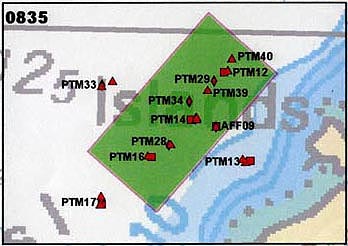 The two charts below plot mean sulphide and mean redox values at the same four sampling stations, from 2004 to 2006. Stations #AFF 09 and #PTM 14 are in the fish farm lease area. Stations #PTM 17 and #PTM 33 are reference sites.