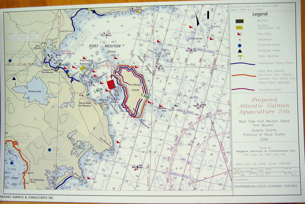 Over the summer and fall of 2006, the Port Mouton Bay community learned of a proposal to establish a second fish farm in the Bay. The community had been co-existing with one fish farm in the Bay since 1994/1995. During that time fishermen and others living around the Bay had grown increasingly concerned about the negative effects of this existing fish farm. The prospect of second, much larger, fish farm in the Bay galvanized the community to take action.