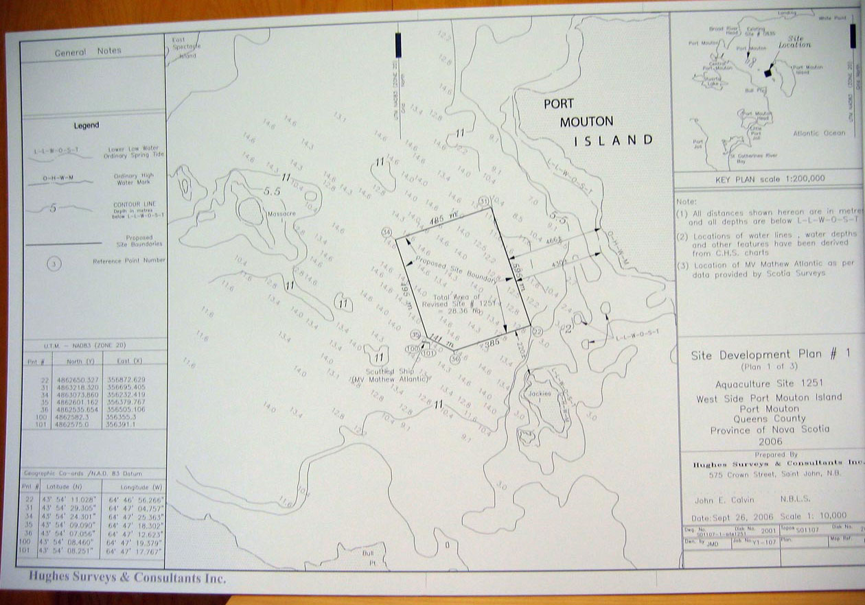 In Nova Scotia, aquaculture projects are reviewed by both the province and the federal governments. In the fall of 2006, these reviews were well-underway. The community undertook an indepth "course" learning how these processes worked, taking advantage of any "public consultation" opportunities offered by these processes. In presenting our case, we identified and documented our key areas of concern.